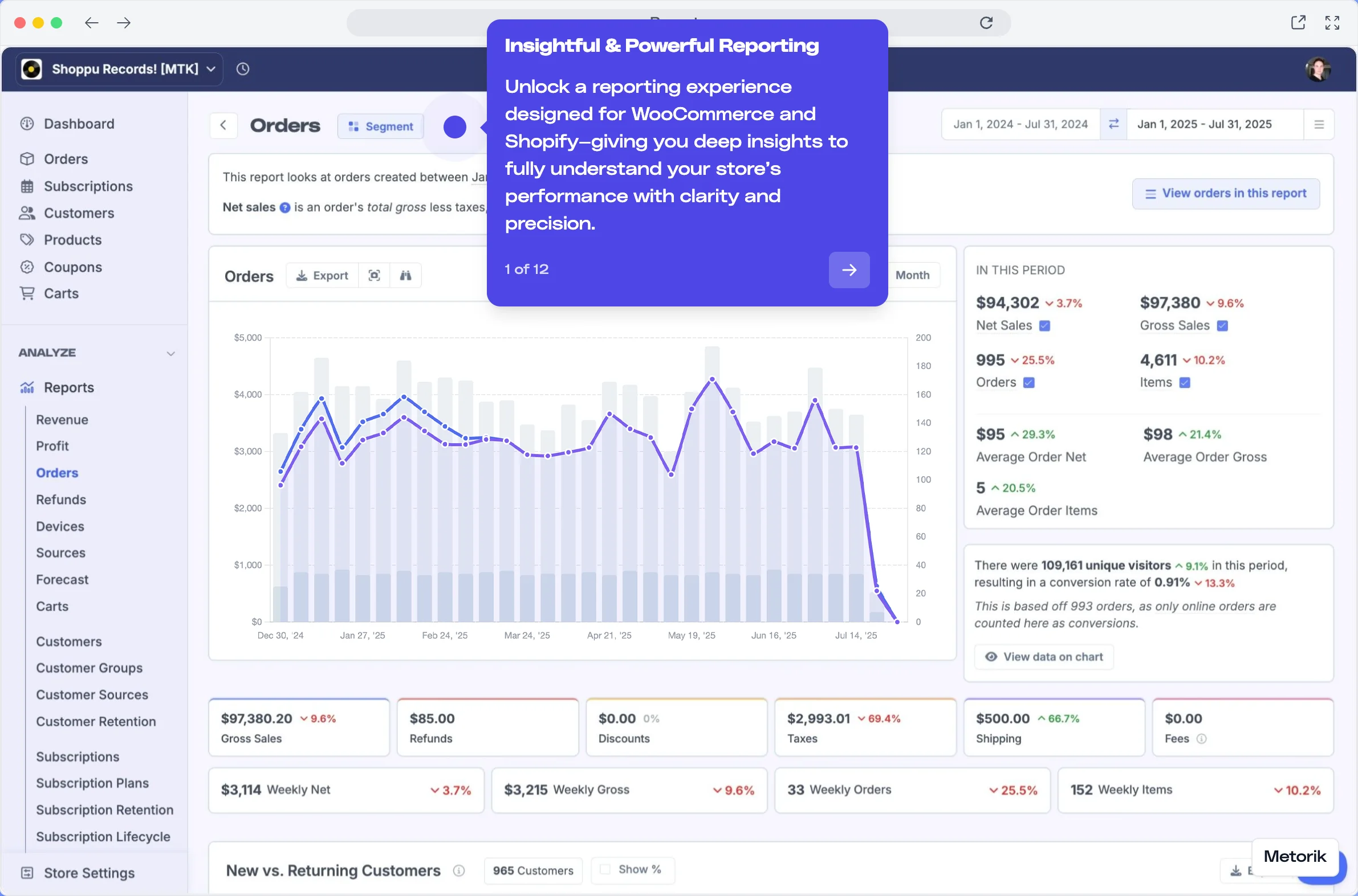 Metorik provides powerful, intuitive eCommerce reporting and Email Marketing tools leading stores love, trust, and rely on to grow their businesses.