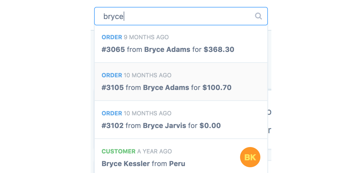 The problem is when you want to search not just orders or not just customers, but both, at the same time. Similarly, you may want to see any related subscriptions when searching too. For example, you get a call from a customer and want to pull up their data. It can be a bit of work to search for their orders, subscriptions, and customer profile, one-by-one. Likely you'll just end up stressed out with 3 tabs open.