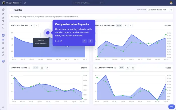 With real-time tracking of every cart, you'll finally have the data on why certain customers aren’t checking out, and the tools to win them back.